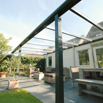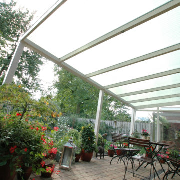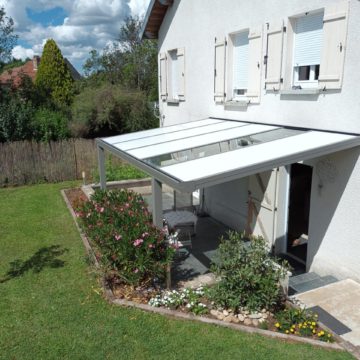Redessinez l’espace de votre terrasse. L’ATRIUM ELEGANCE avec sa toiture en polycarbonate est la solution idéale pour protéger votre terrasse contre les intempéries. Disponible dans tous les coloris RAL, l’ATRIUM ELEGANCE peut abriter votre terrasse en étant adossé à votre habitation ou s’inscrire comme un espace bien être indépendant au cœur de votre jardin. Plus qu’un auvent et une couverture de terrasse, L’ATRIUM ELEGANCE est également une solution pour un carport et ainsi abriter votre véhicule. Avec une avancée possible jusqu’à 7m et une hauteur pouvant dépasser 3m50, repensez vos espaces extérieurs et affranchissez vous des contraintes.