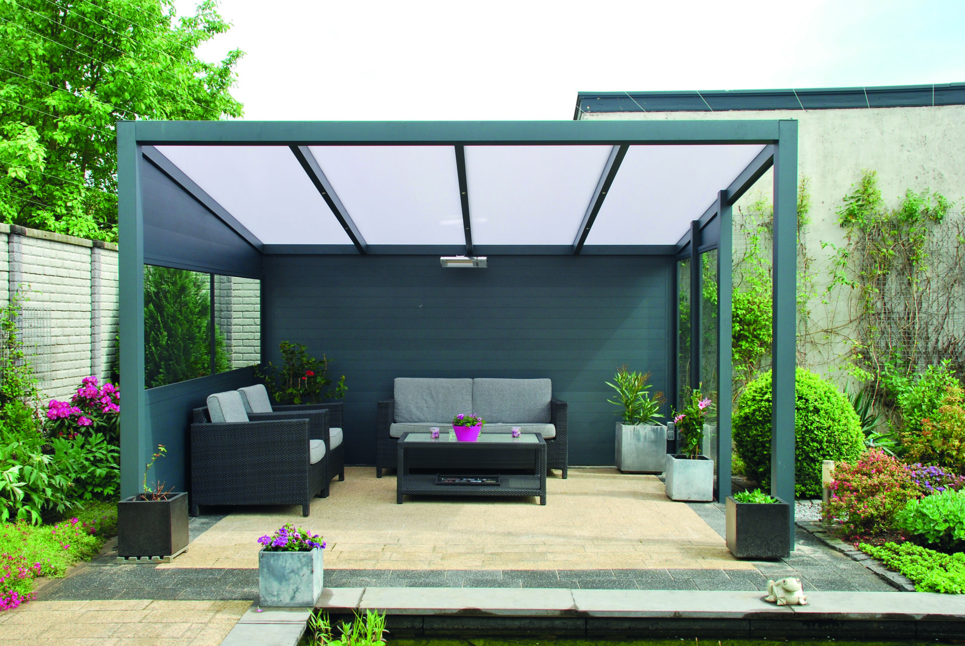 L’ATRIUM CONFORT avec sa toiture occultante est la solution idéale pour protéger votre terrasse du soleil et de la chaleur. L’ATRIUM CONFORT assure une protection maximale de votre terrasse en étant adossé à votre maison. Une confi guration autoportée lui permet d’être une solution idéale pour profiter davantage de votre jardin.