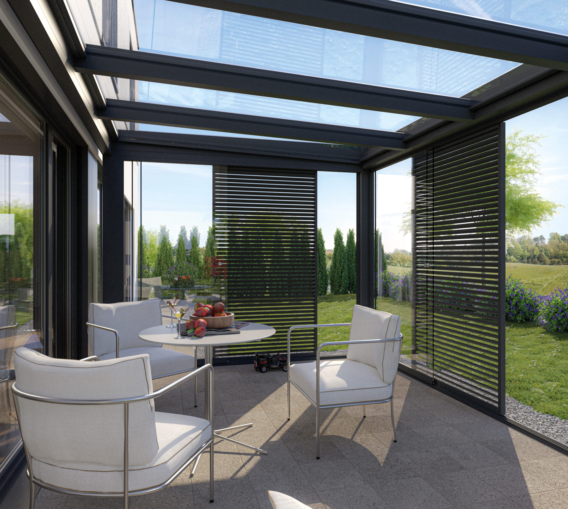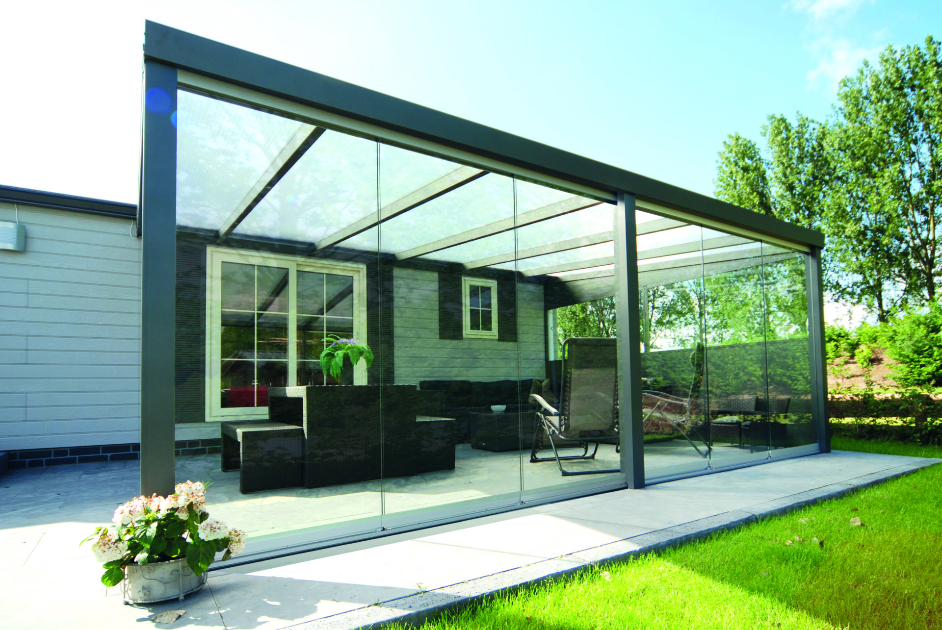 Transformez votre ATRIUM en un écrin de verre. Restez connectés à vos extérieurs tout en restant à l’abri sous votre pergola. Les parois de verre coulissantes VISIO vous permettent de prolonger les saisons bien à l’abri. Disponibles sur mesure et pouvant aller jusqu’à des dimensions de 7m de large x 2m60 de haut, les parois de verre coulissantes VISIO s’adaptent à tout type de pergola.