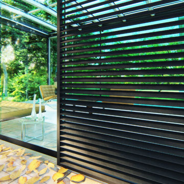 Préservez votre intimité avec les parois coulissantes MODULO. Alliez confort et design pour équiper votre pergola. Composées de lames ajourées en aluminium ou en bois, les parois coulissantes MODULO vous permettent de profiter de votre terrasse à tout moment de la journée.