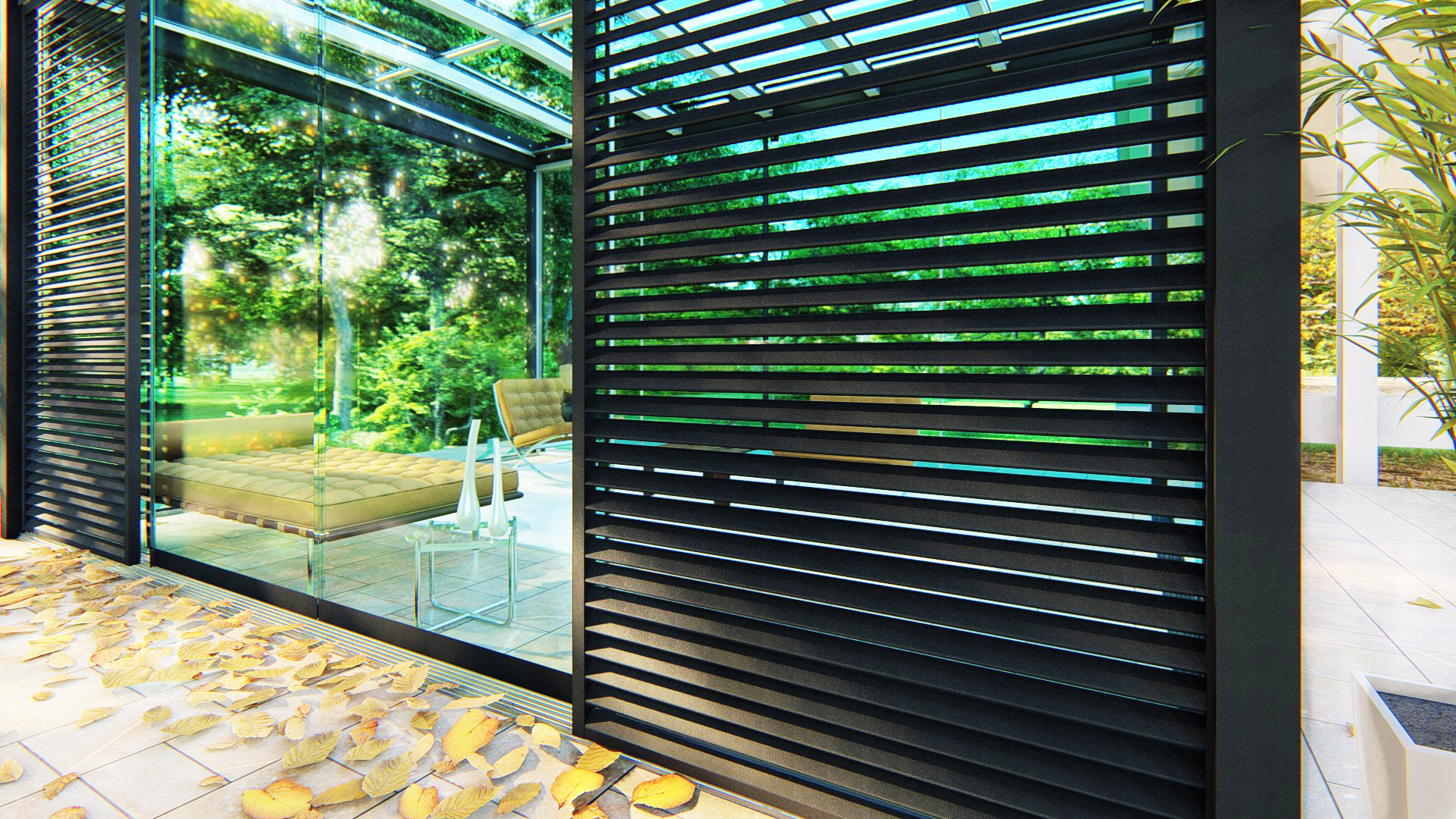 - Lames double paroi de 220mm de large = faible perte de luminosité lorsqu’elles sont ouvertes